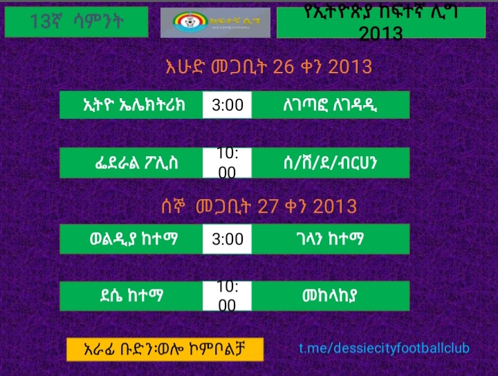 ✅ደሴ ከተማ እና ሶዶ ከተማን ባገናኘው ጨዋታ በመጀመሪያው አጋማሽ የደሴ ከተማዎች የበላይነት የታየበትና በኳስ ቁጥጥሩም ተሽለው የታዩበት አጋማሽ ነበር ። ሶዶ ከተማዎች ጨዋታውን በማፈግፈግ እና ረጅም ኳስ በመጠቀም ወደ ግብ ለመድረስ ሲሞክሩ ታይተዋል። በ31ኛው ደቂቃ ላይ በሶዶው ግብ ጠባቂ ስህተት የተገኘችውን ኳስ በአከር ቻም አማካኝነት በማስቆጠር ደሴ ከተማን መሪ አድርጎ ወደ መልበሻ ክፍል መግባት ችለዋል።